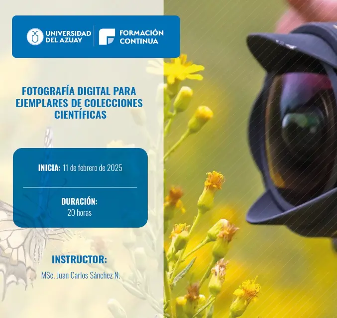 La Universidad del Azuay te invita al curso "Fotografía digital para ejemplares de colecciones científicas", ideal para amantes de la fotografía 📷 y la naturaleza 🌿.